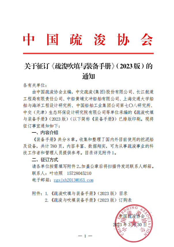 关于征订《疏浚吹填与装备手册》(2023版)的通知