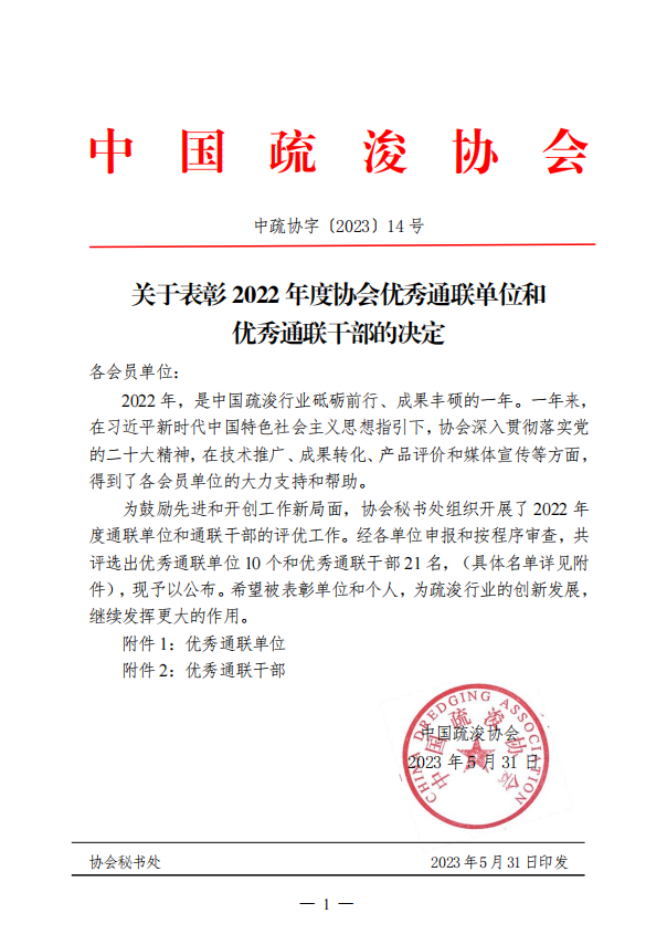关于表彰2022年度优秀通联单位和优秀通联干部的决定