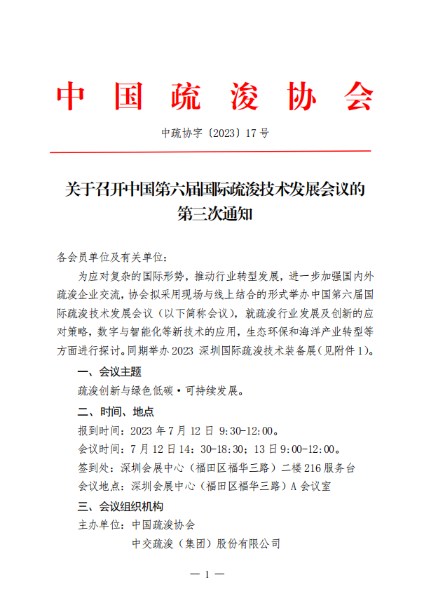 关于召开中国第六届国际疏浚技术发展会议的第三次通知