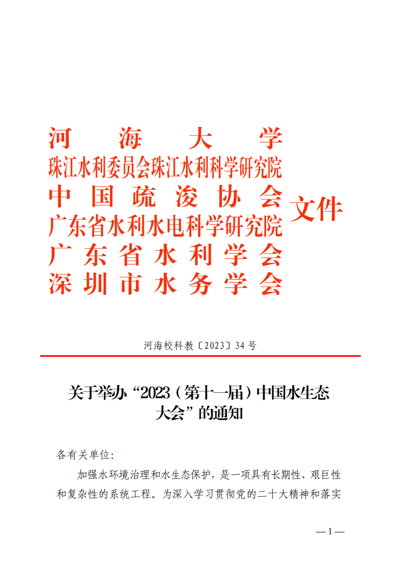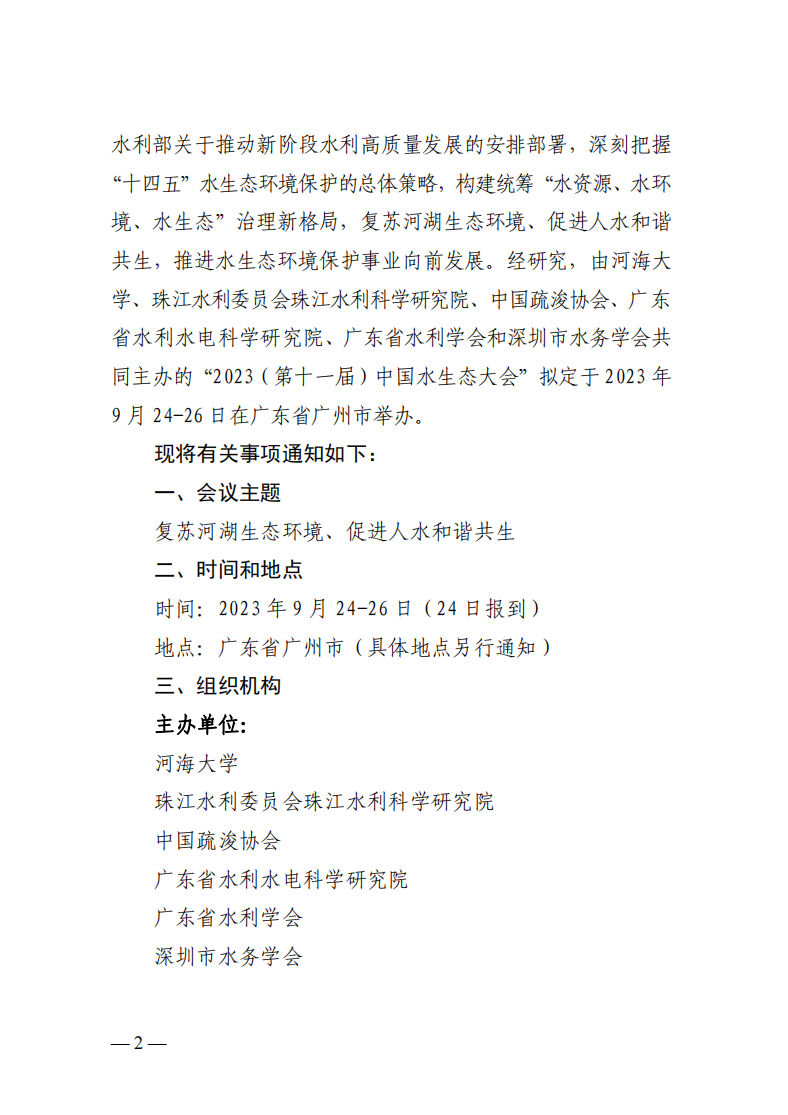 关于举办“2023(第十一届)中国水生态大会”的通知