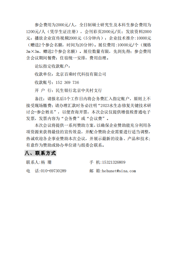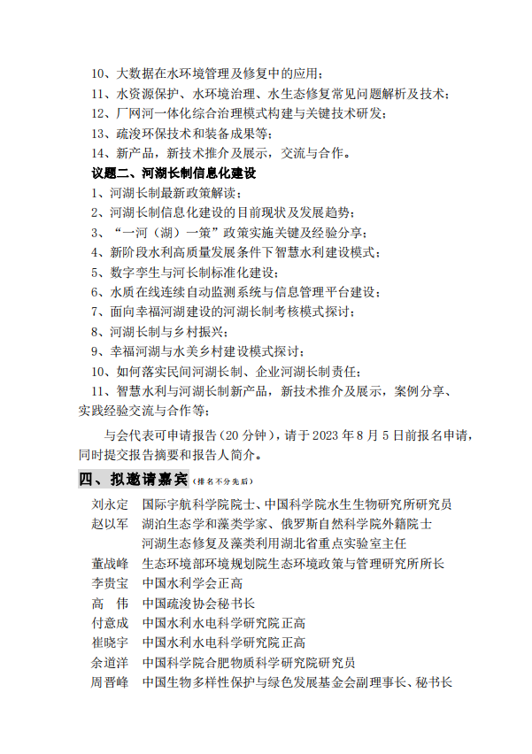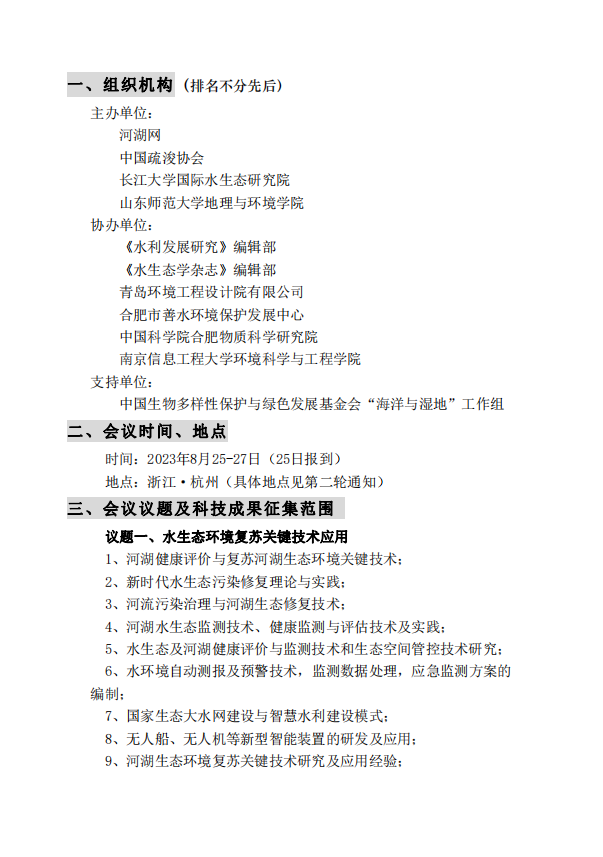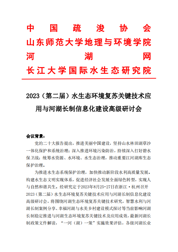 2023(第二届)水生态修复关键技术与河湖长制建设高级研讨会
