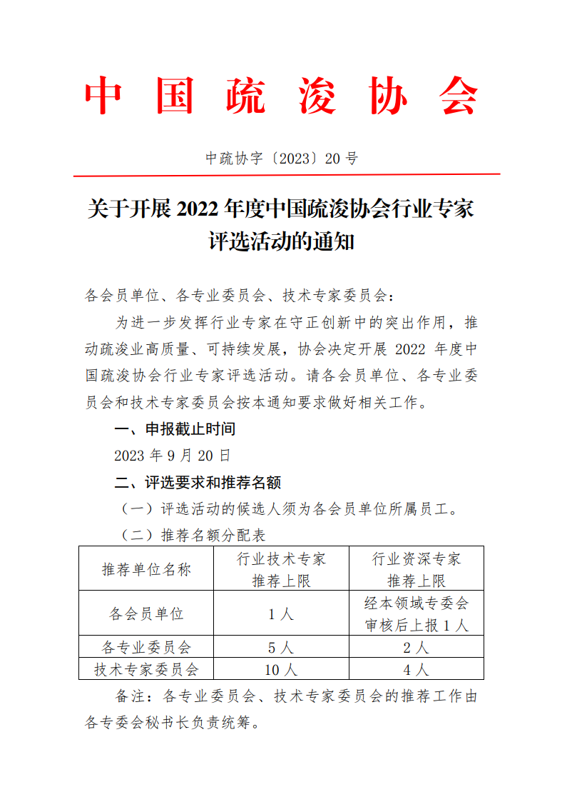 关于开展2022年度中国疏浚协会行业专家评选活动的通知