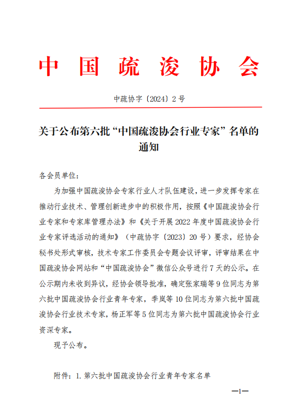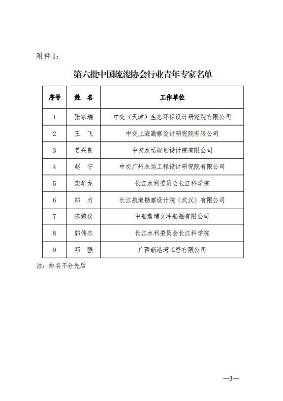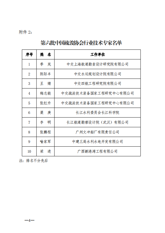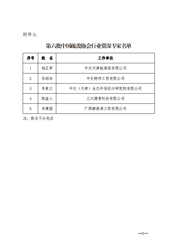 关于公布第六批“中国疏浚协会行业专家”名单的通知