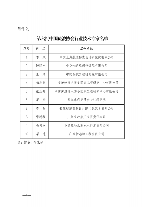 关于公布第六批“中国疏浚协会行业专家”名单的通知