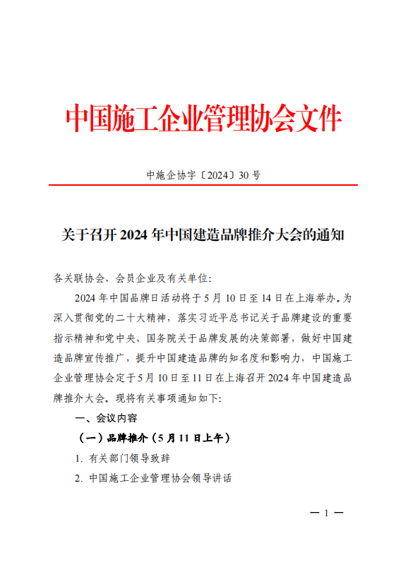 关于召开 2024 年中国建造品牌推介大会的通知