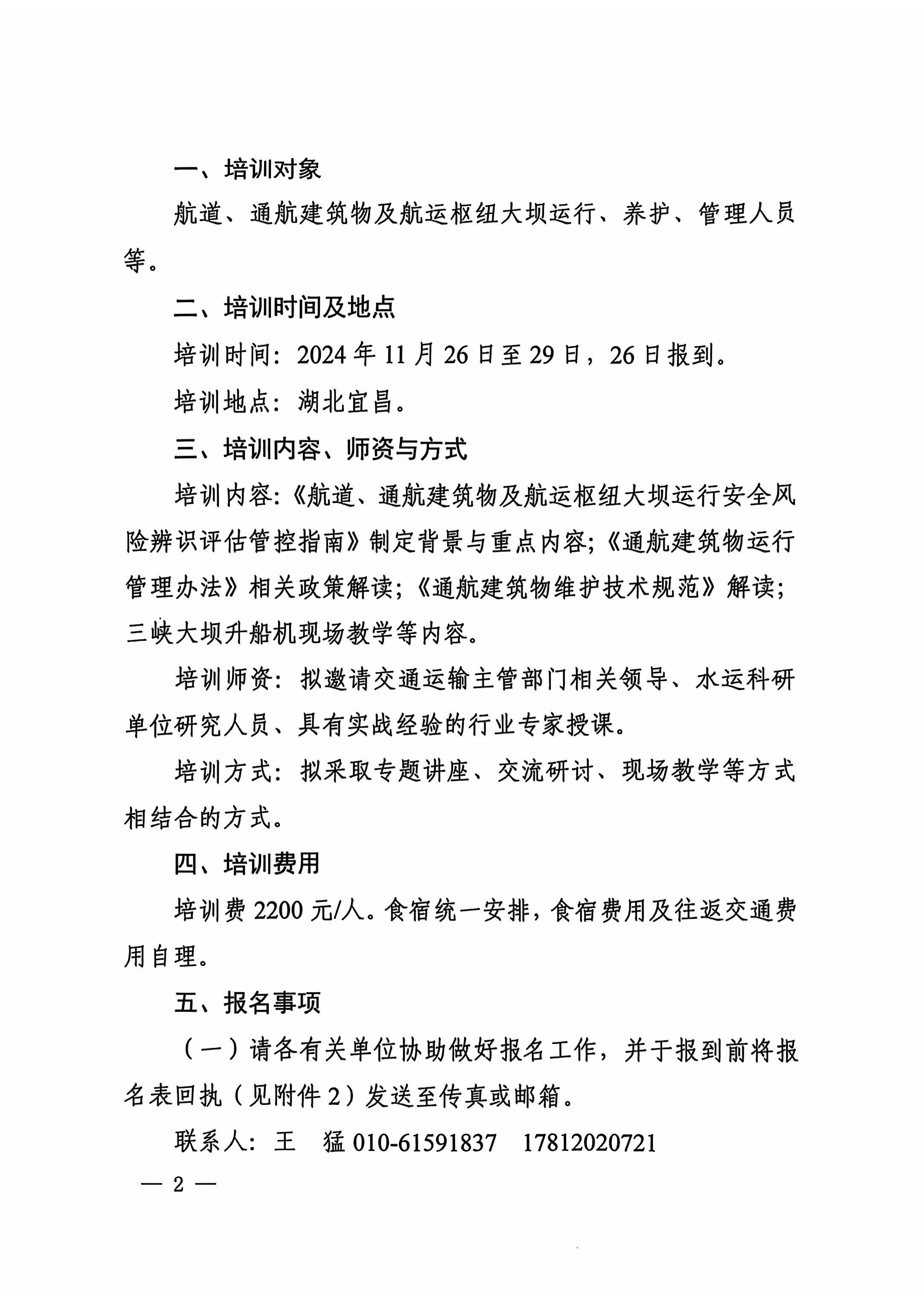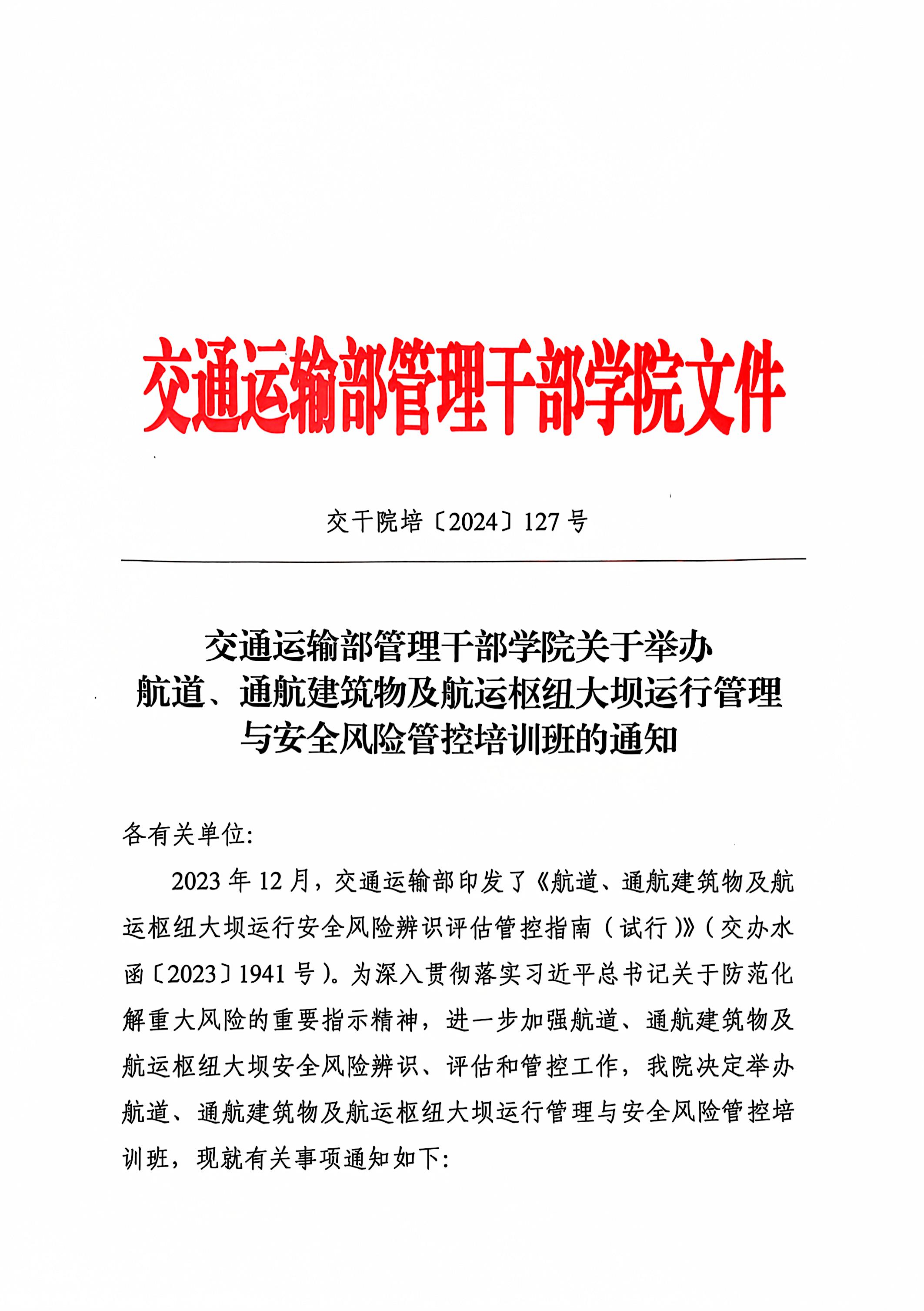 《航道、通航建筑物及航运枢纽大坝运行管理与安全风险管控培训班的通知》