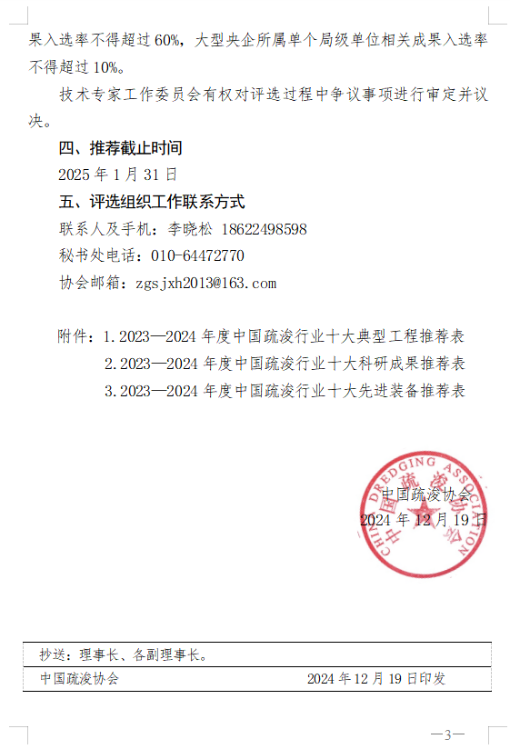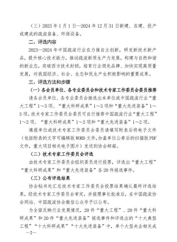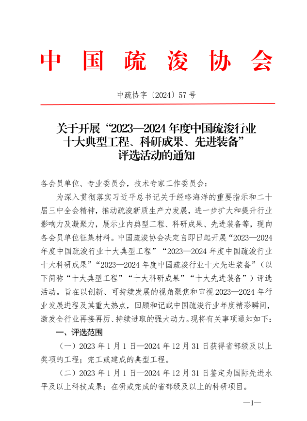 关于开展“2023—2024年度中国疏浚行业 十大典型工程、科研成果、先进装备” 评选活动的通知