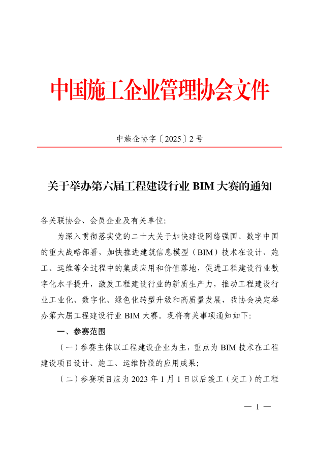 关于举办第六届工程建设行业 BIM 大赛的通知
