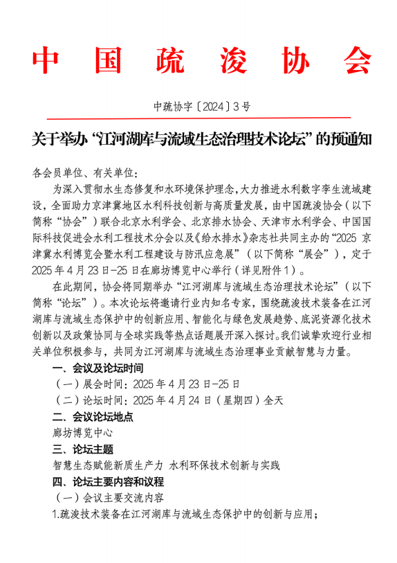 附件1:关于举办 “2025 京津冀水利博览会暨水利工程建设与防汛应急装备展览会”的通知
