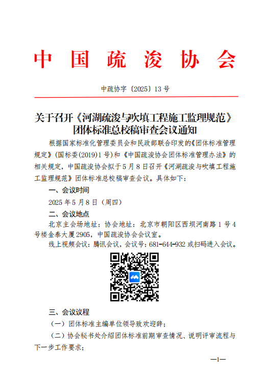 关于召开《河湖疏浚与吹填工程施工监理规范》团体标准总校稿审查会议通知