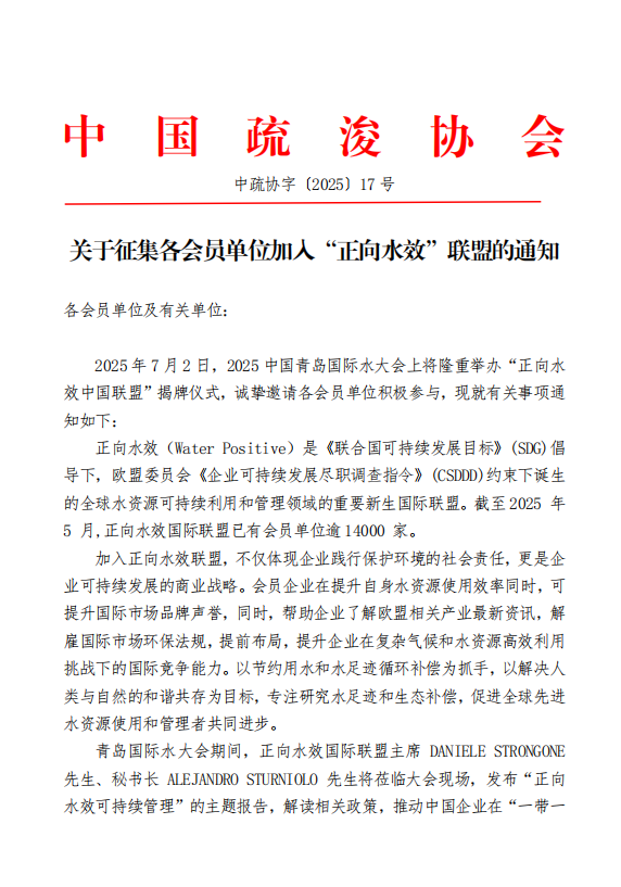 关于征集各会员单位加入“正向水效”联盟的通知