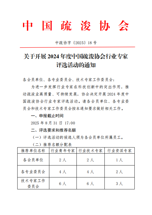 关于开展2024年度中国疏浚协会行业专家评选活动的通知