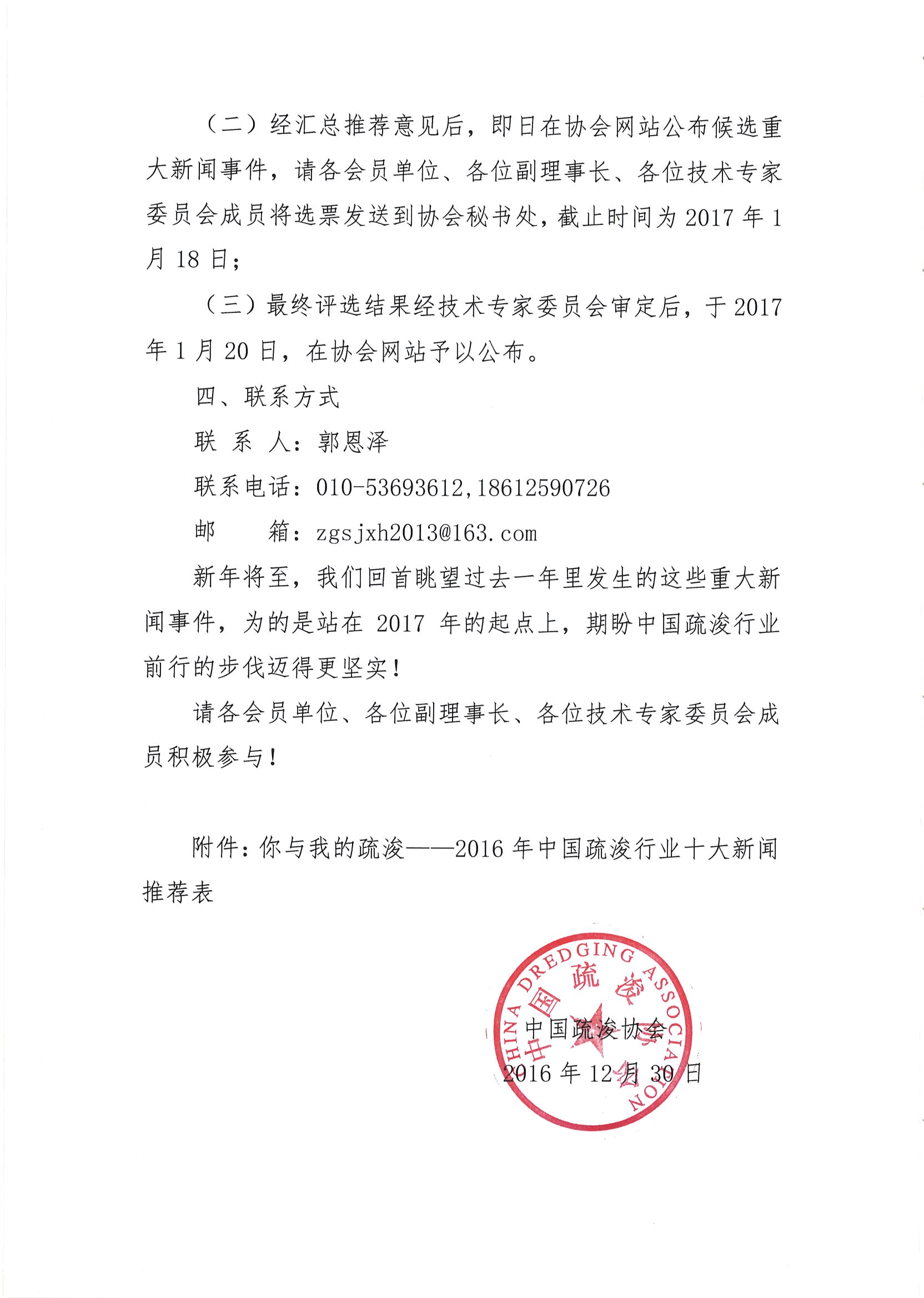关于开展“你与我的疏浚——2016年中国疏浚行业十大新闻”评选活动的通知