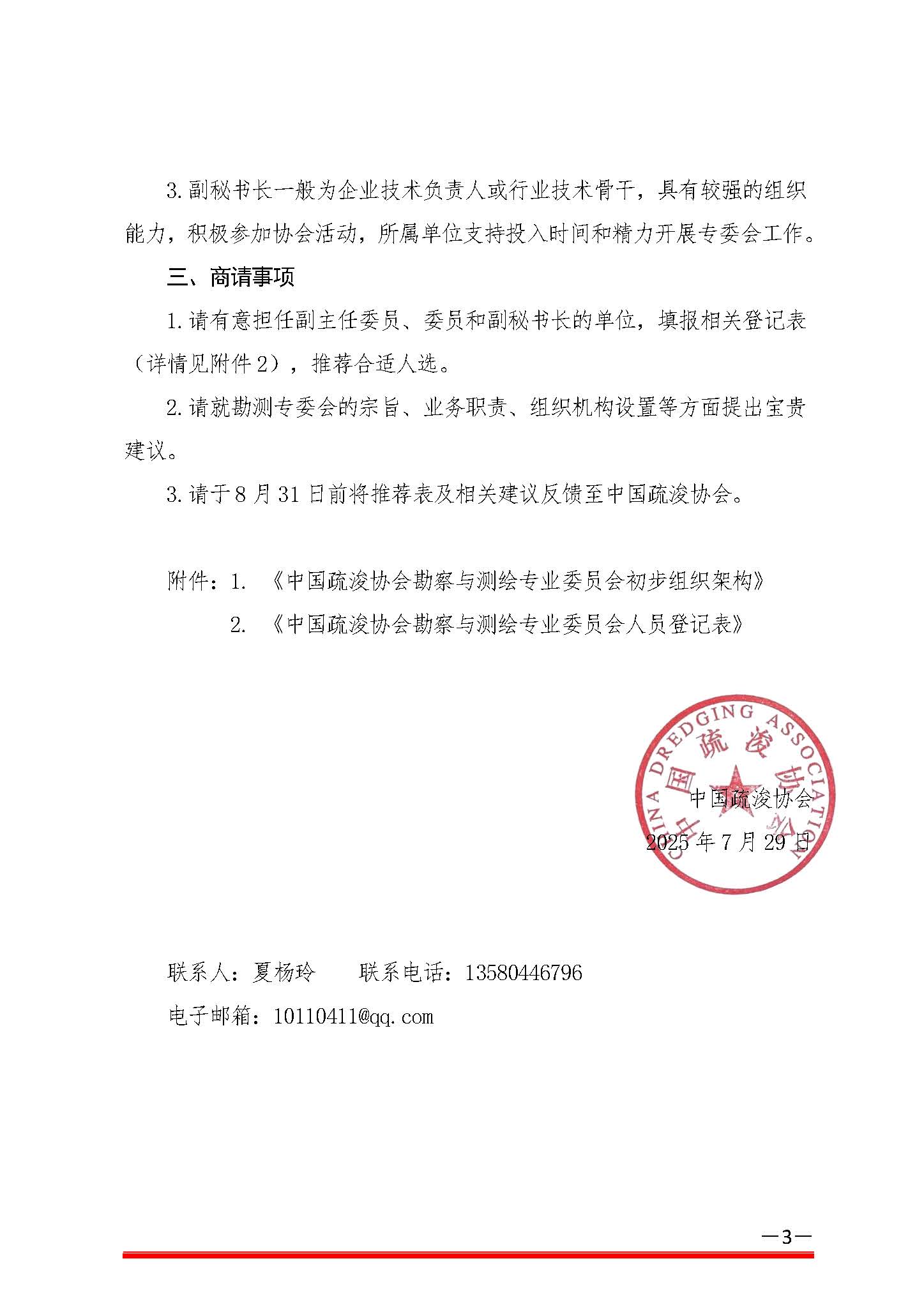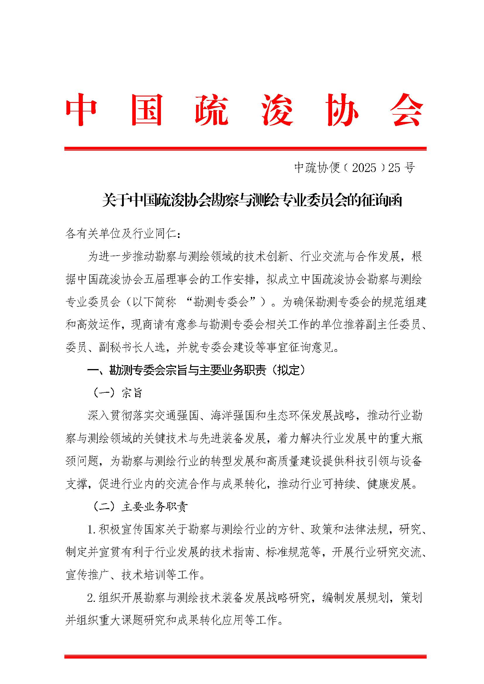 关于中国疏浚协会勘察与测绘专业委员会的征询函