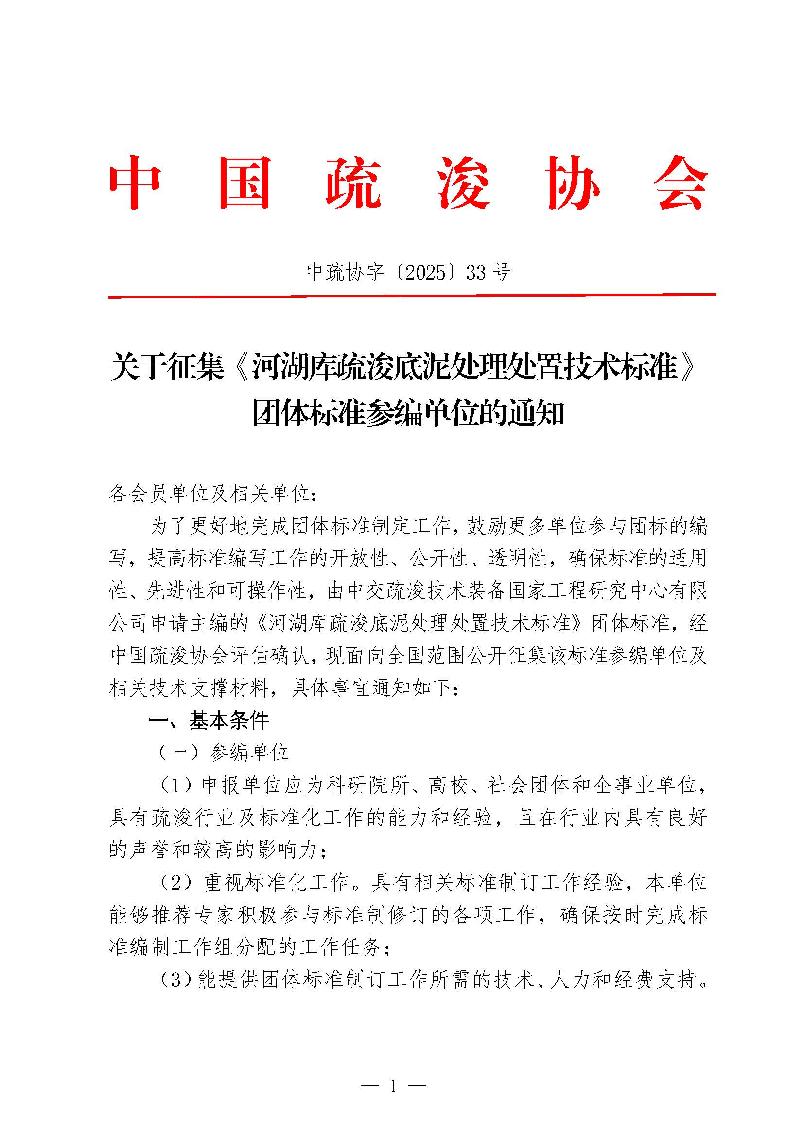 关于征集《河湖库疏浚底泥处理处置技术标准》团体标准参编单位及相关技术材料支撑的通知