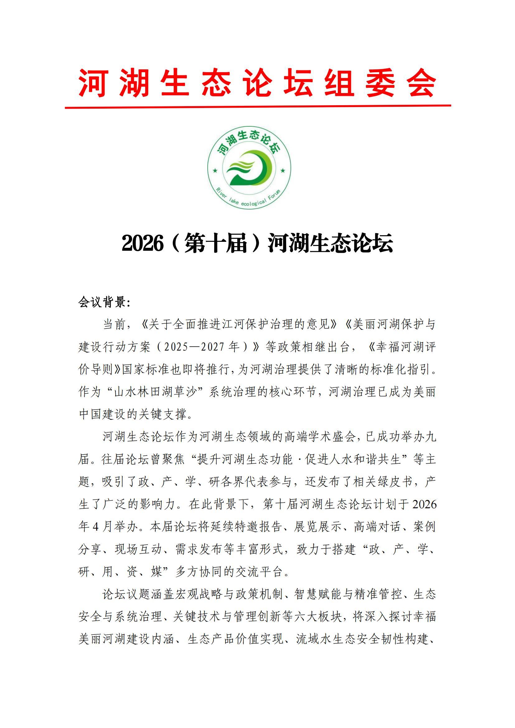 2026(第十届)河湖生态论坛