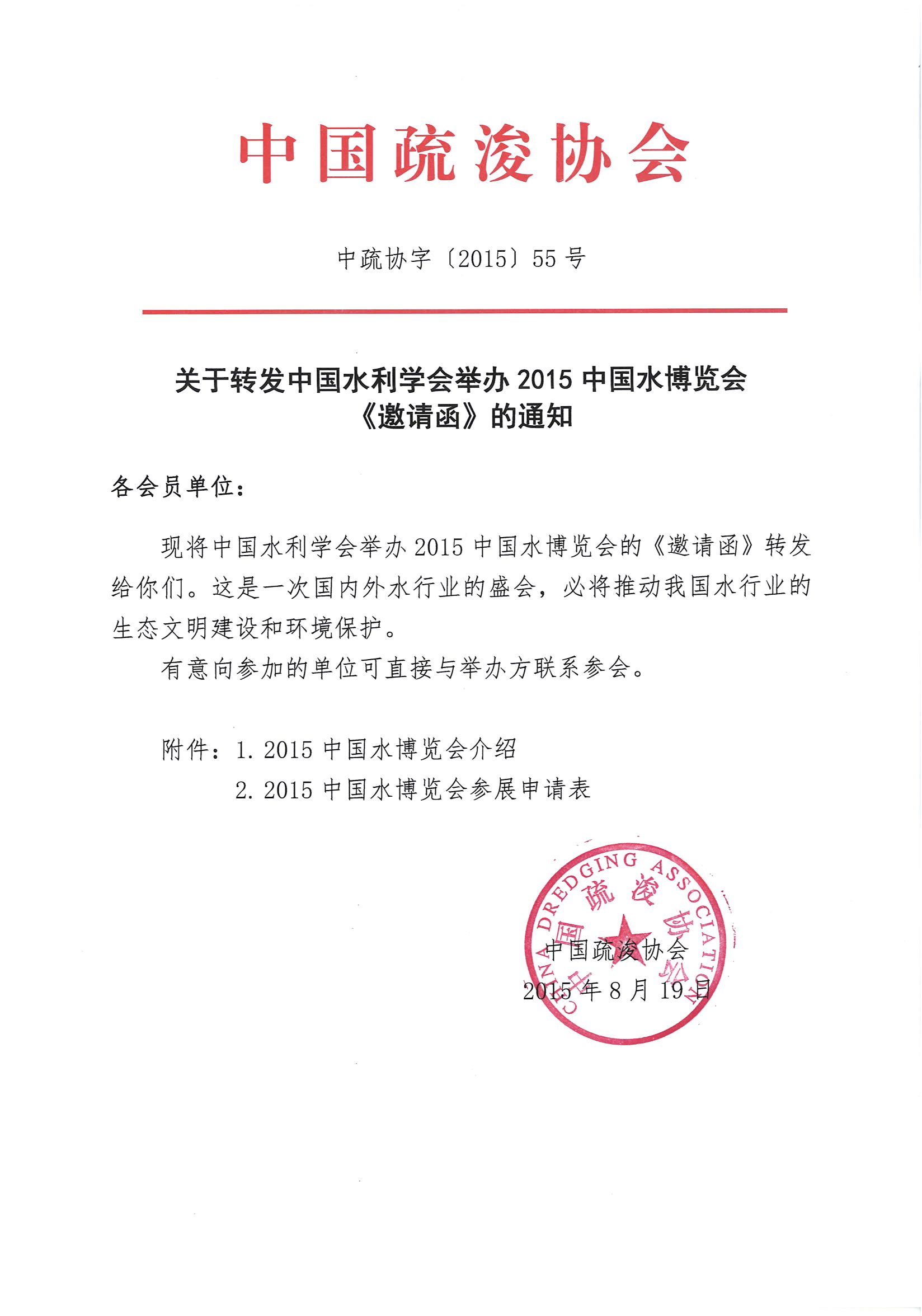 关于转发中国水利学会举办2015中国水博览会《邀请函》的通知