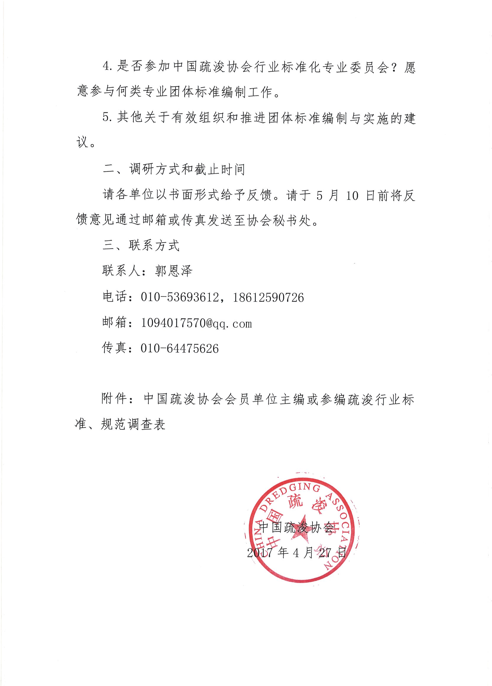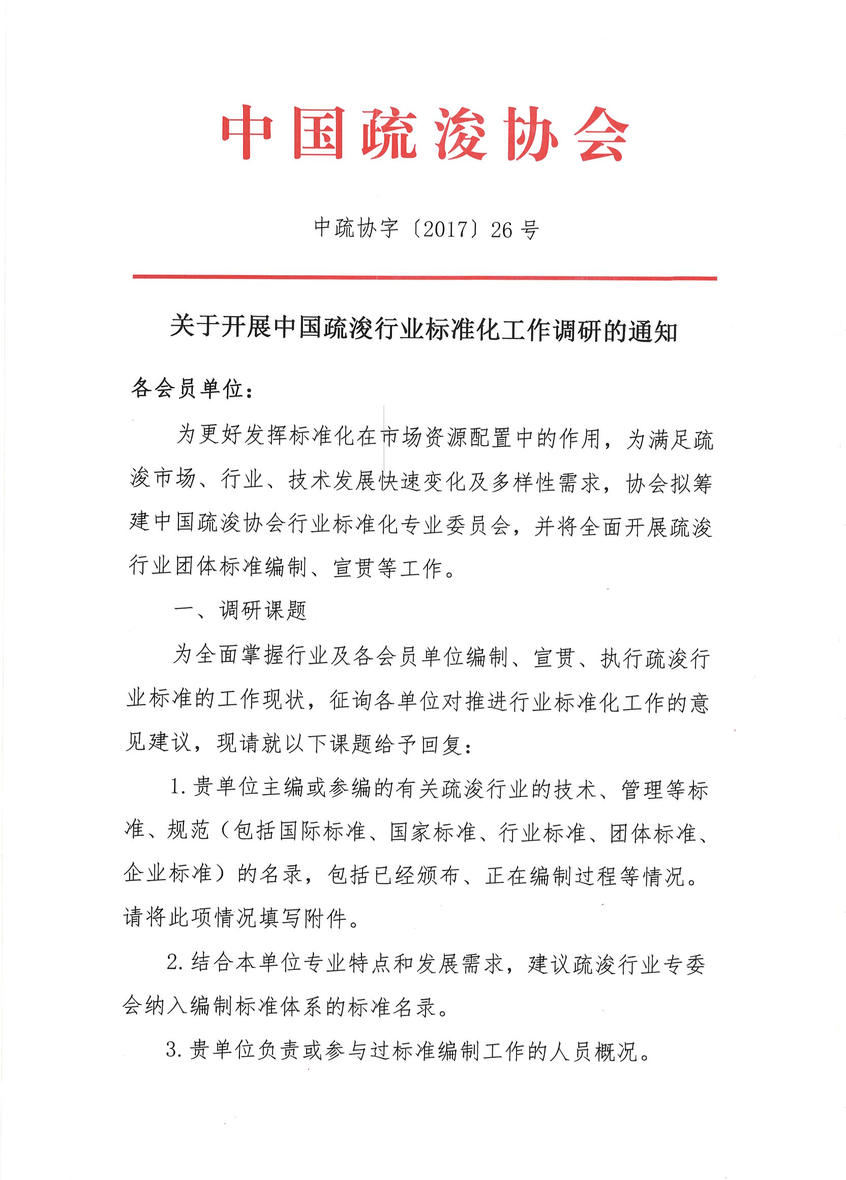 关于开展中国疏浚行业标准化工作调研的通知