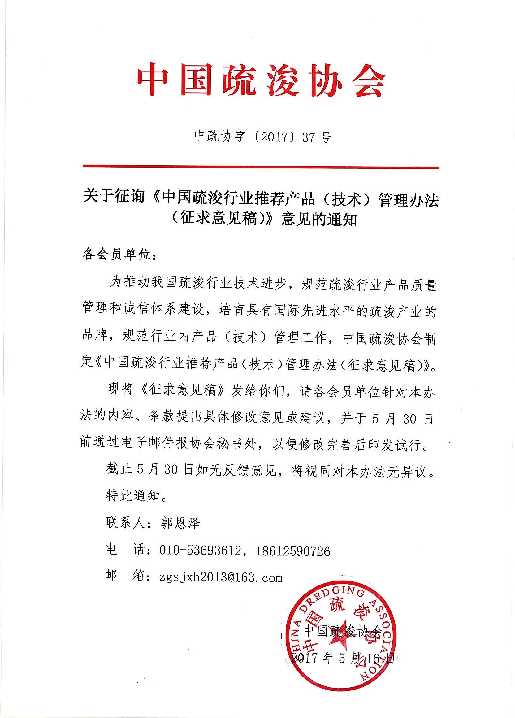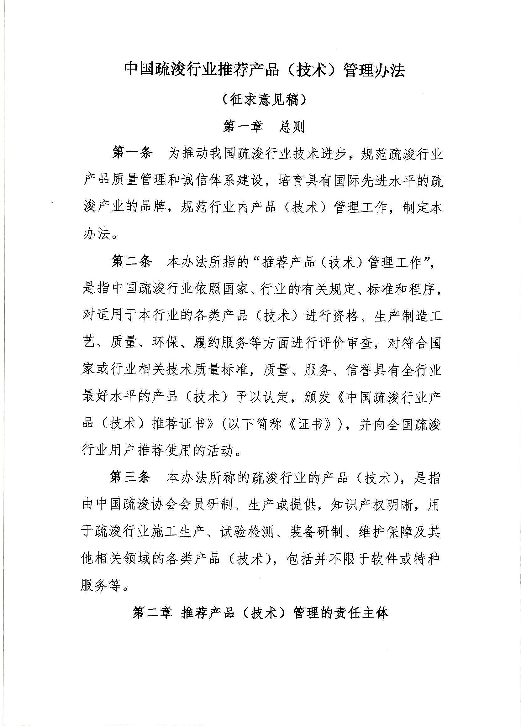 关于征询《中国疏浚行业推荐产品(技术)管理办法(征求意见稿)》意见的通知