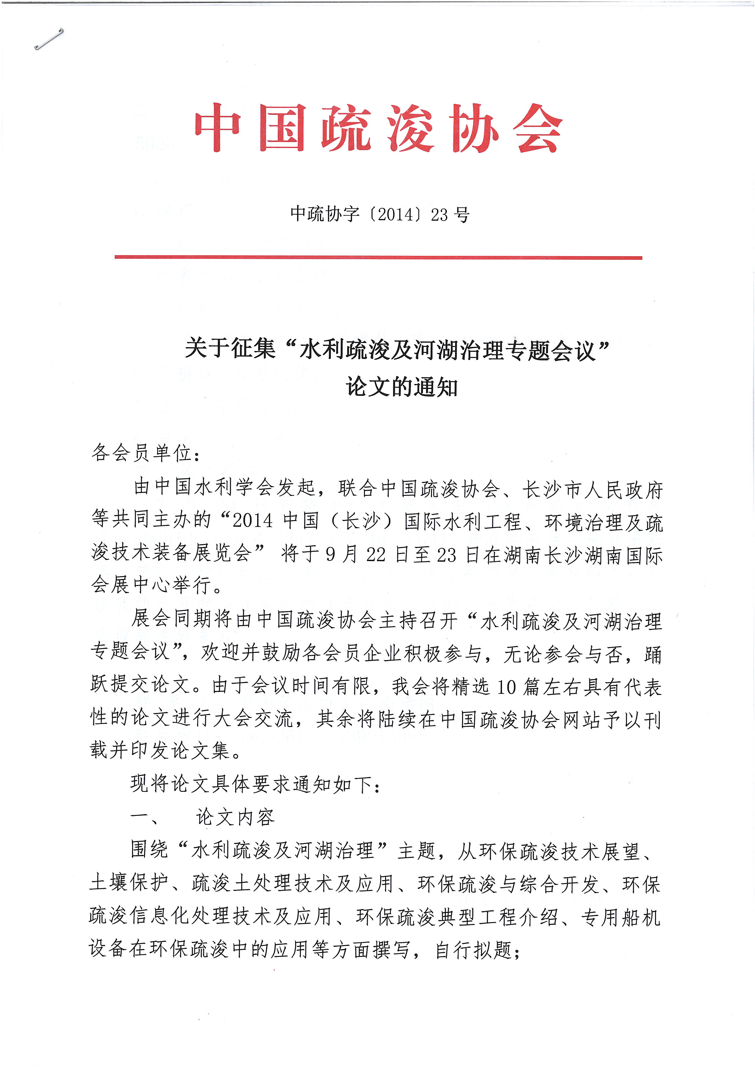 关于征集“水利疏浚及河湖治理专题会议”论文的通知