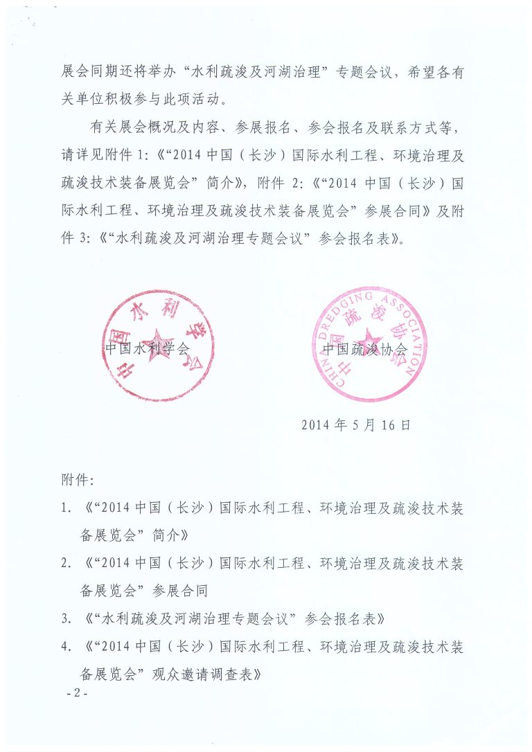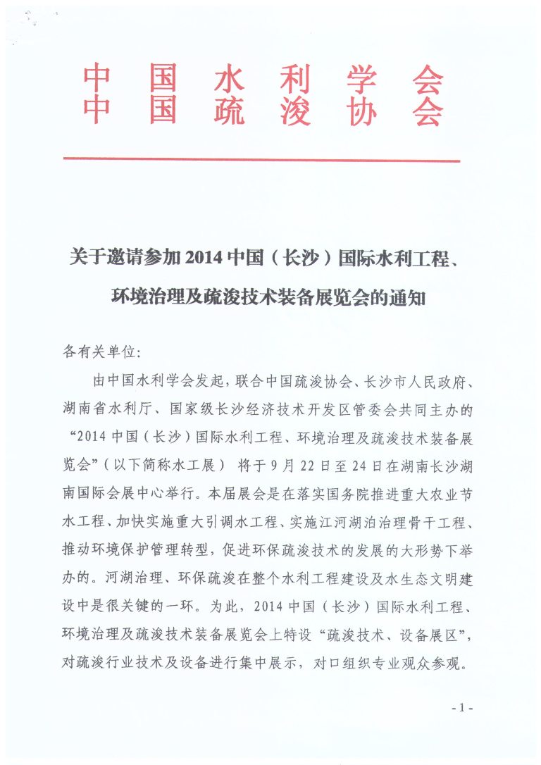 原文下载:关于邀请参加2014中国(长沙)国际水利工程、环境治理及疏浚技术装备展览会的通知