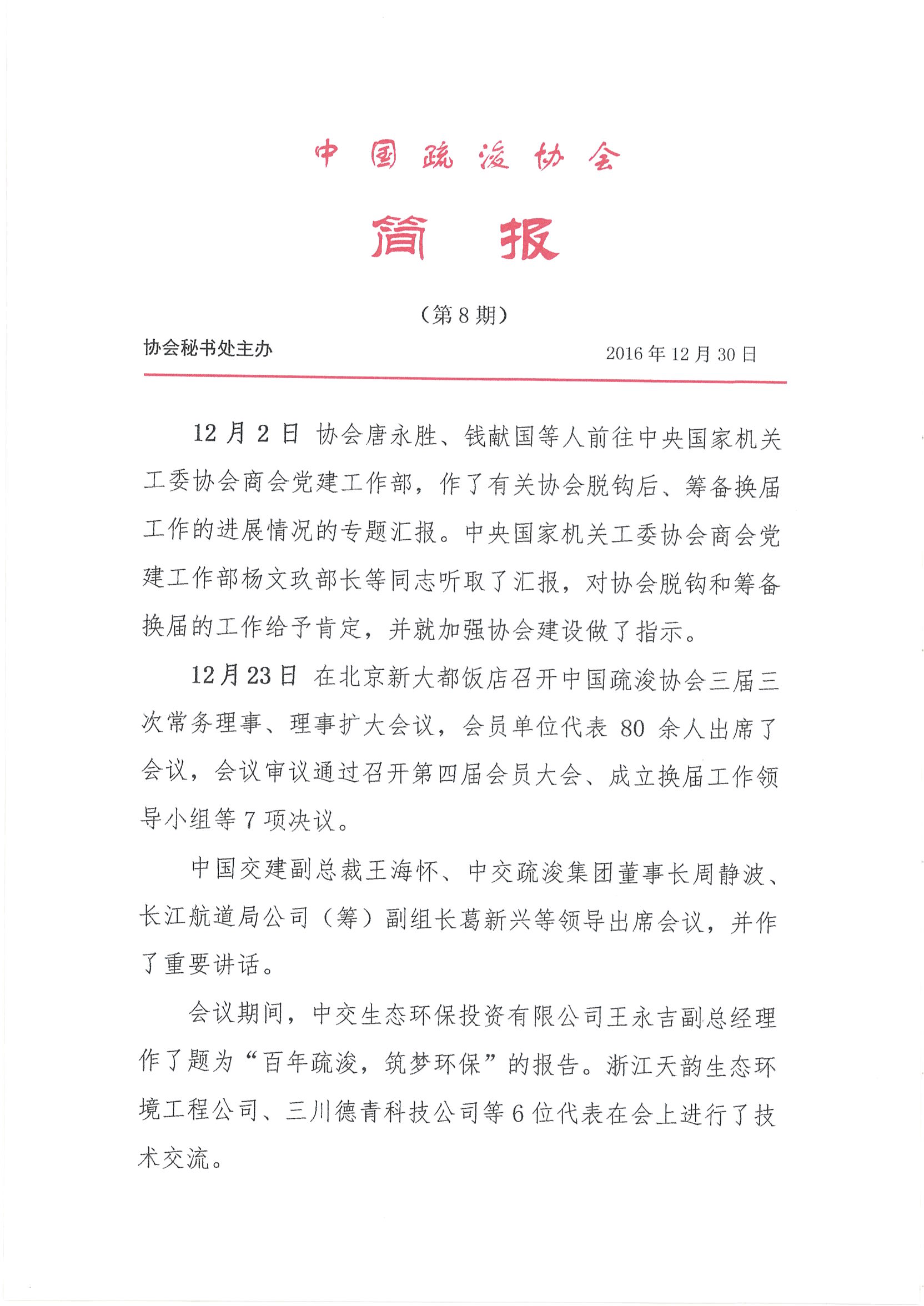 中国疏浚协会简报(第八期)