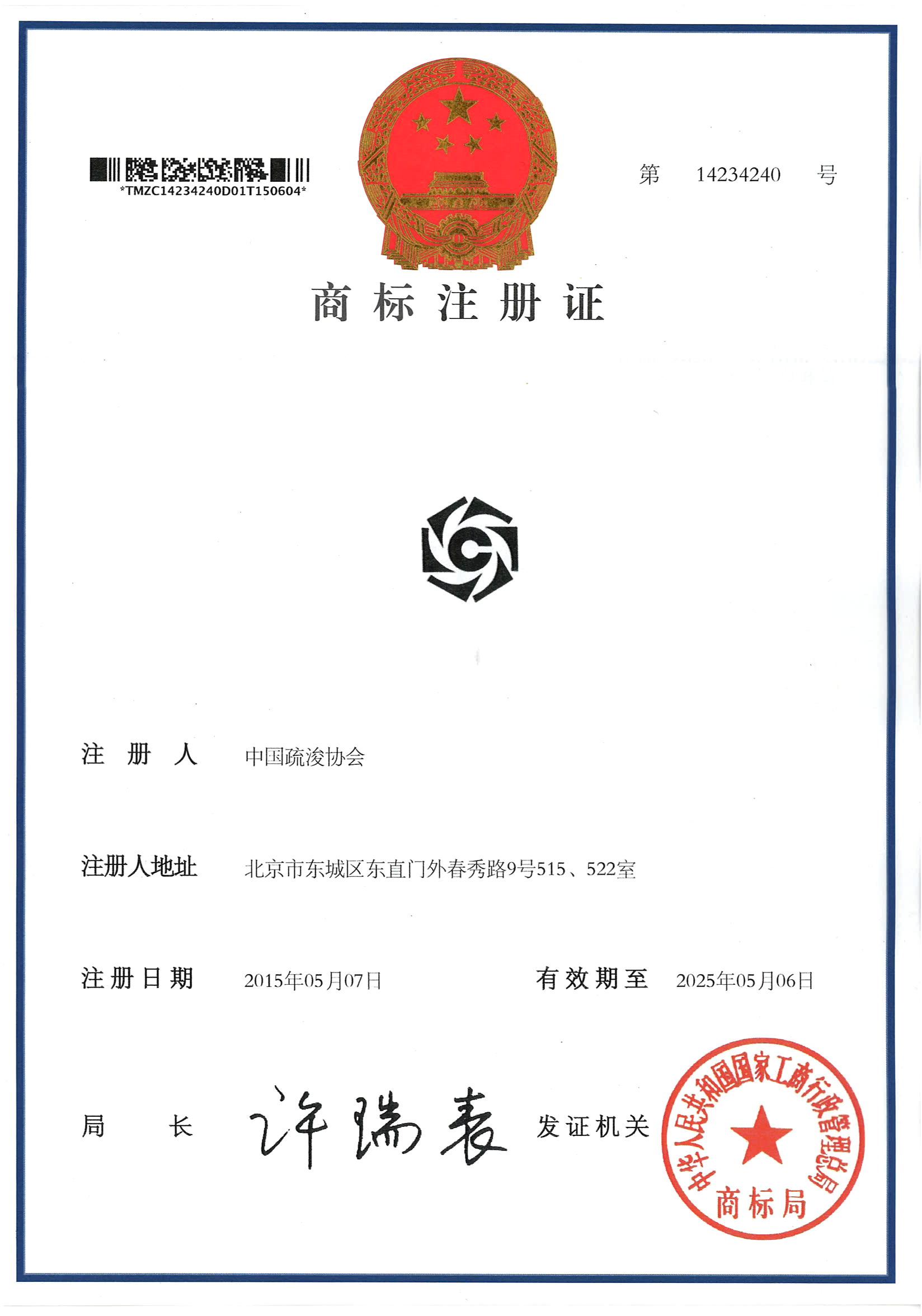 正值中央两办关于《行业协会脱钩总体方案》发布之际,传来中国疏浚协会logo标识成功获得《商标注册证》的消息,特向广大会员予以公告。注册范围包含了疏浚行业所涉及的工程、船机、材料、配套产品等14个类别140个品类,有效期10年。