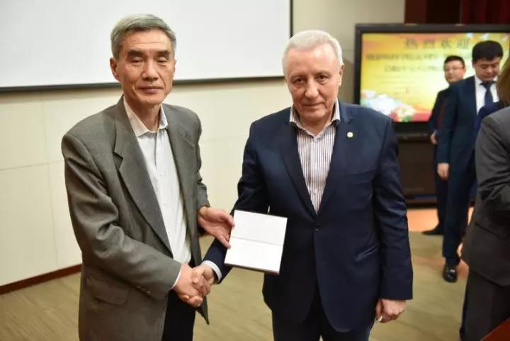 俄罗斯科学院瓦列里•邦杜尔副院长向协会秘书长钱献国赠送签名