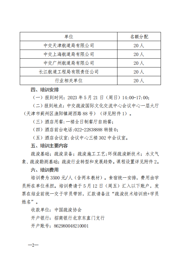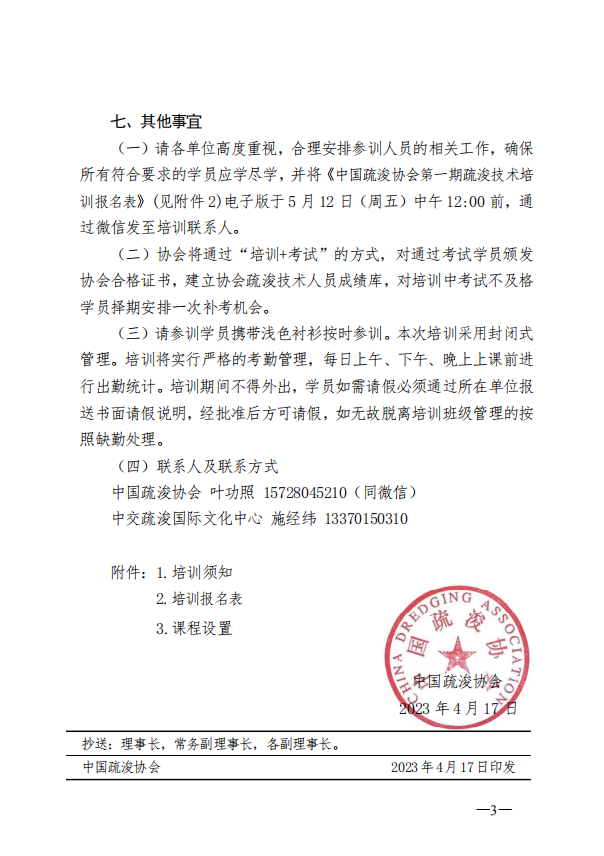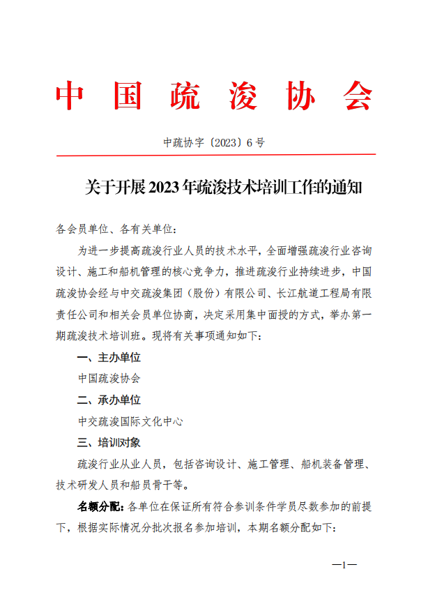 关于开展2023年疏浚技术培训工作的通知