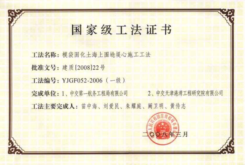 中交天津港湾工程研究院有限公司刘爱民博士和他的团队长期致力于疏浚土的地基处理和无害利用工作,近十年来开发了诸如“大面积超软粘土地基处理技术” 、“模袋固化土海上围埝技术” 以及“潮差带地区水下真空预压加固软基技术”等多项绿色环保的岩土工程技术。这些新技术已经广泛应用于实际工程中,创造了可观的社会效益和经济效益。